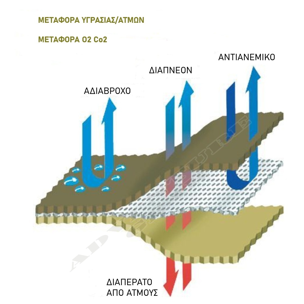 Η καινοτομία του έγκειται στο μοναδικό 3-επίπεδο GORE-TEX® Laminate με την τεχνολογία Gas Permeable (Διαπερατότητα Αερίων). Σε αντίθεση με τις κοινές μεμβράνες GORE-TEX® που χρησιμοποιούνται στα ρούχα, αυτή η μεμβράνη είναι διαπερατή από οξυγόνο και διοξείδιο του άνθρακα. Αυτό σημαίνει ότι ο σάκος μπορεί να κλείσει πλήρως, παρέχοντας 100% προστασία από βροχή, χιόνι και άνεμο, χωρίς τον κίνδυνο ασφυξίας.